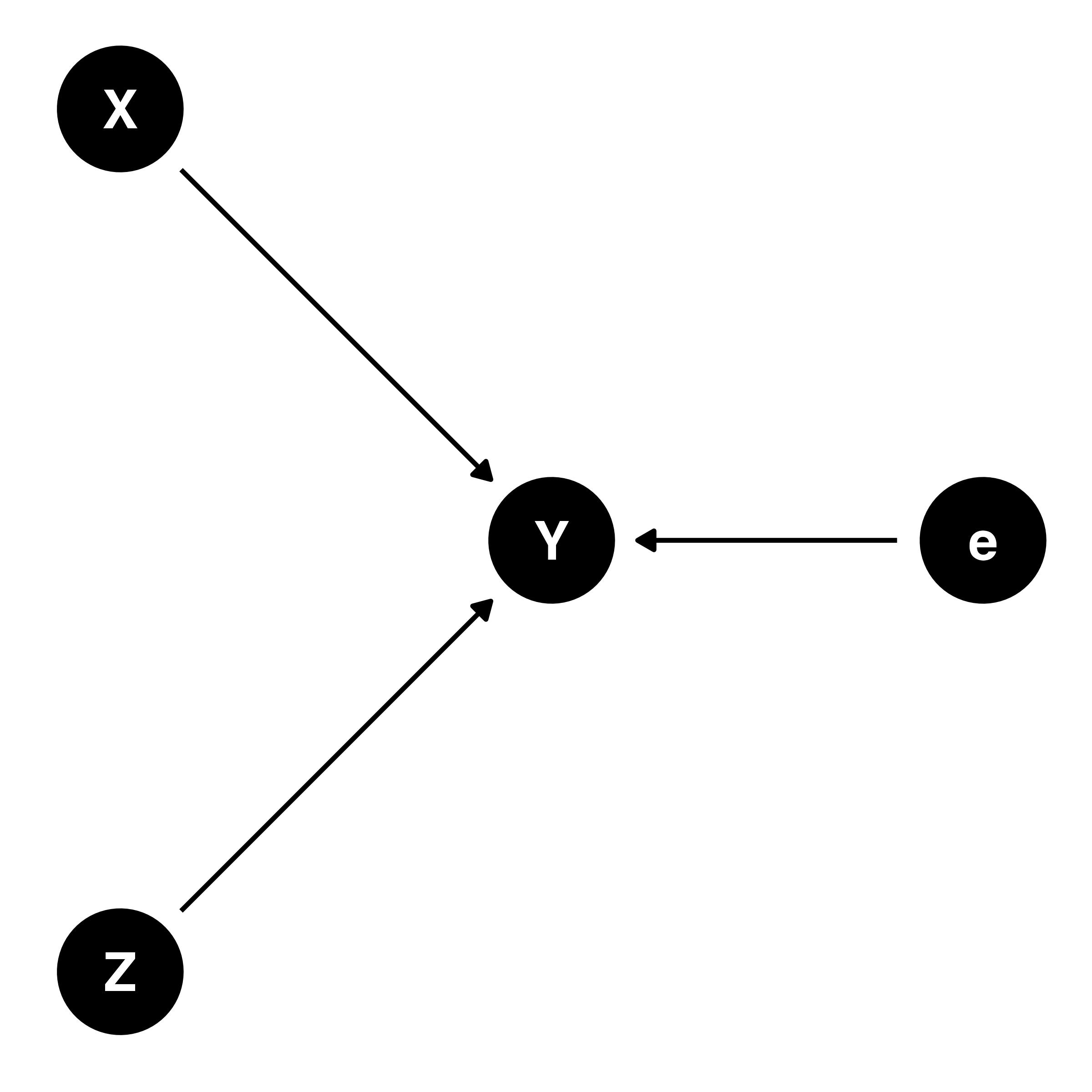 例) 真のモデルが\(Y = \beta_0 + \beta_1 \cdot X + \beta_2 \cdot Z + e\)の場合