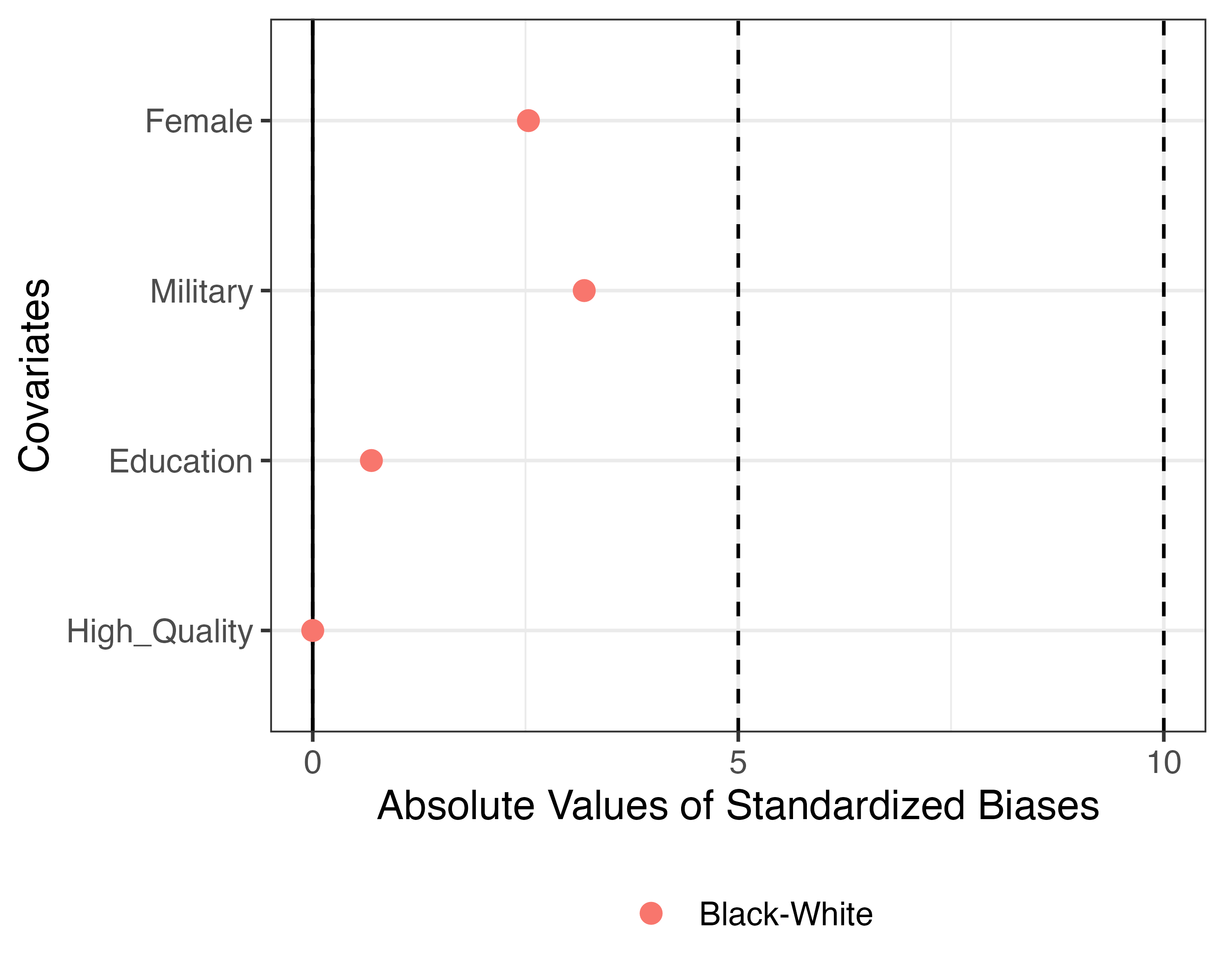 処置変数: 人種(\(\in \{\mbox{black}, \mbox{white}\}\))