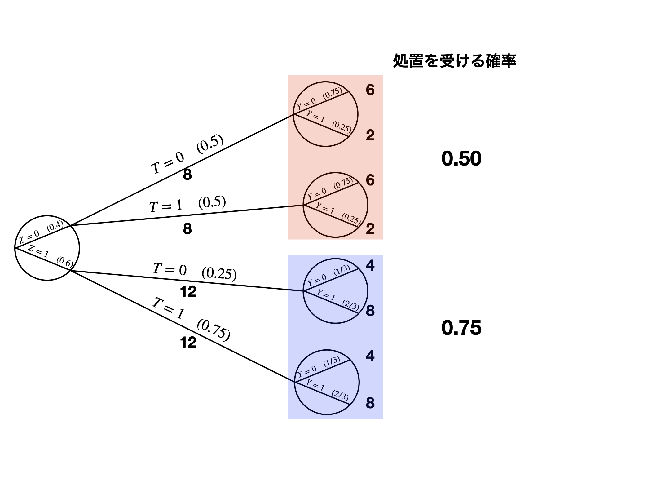 方法: 処置変数と結果変数に影響を与える要因(交絡要因)を揃える