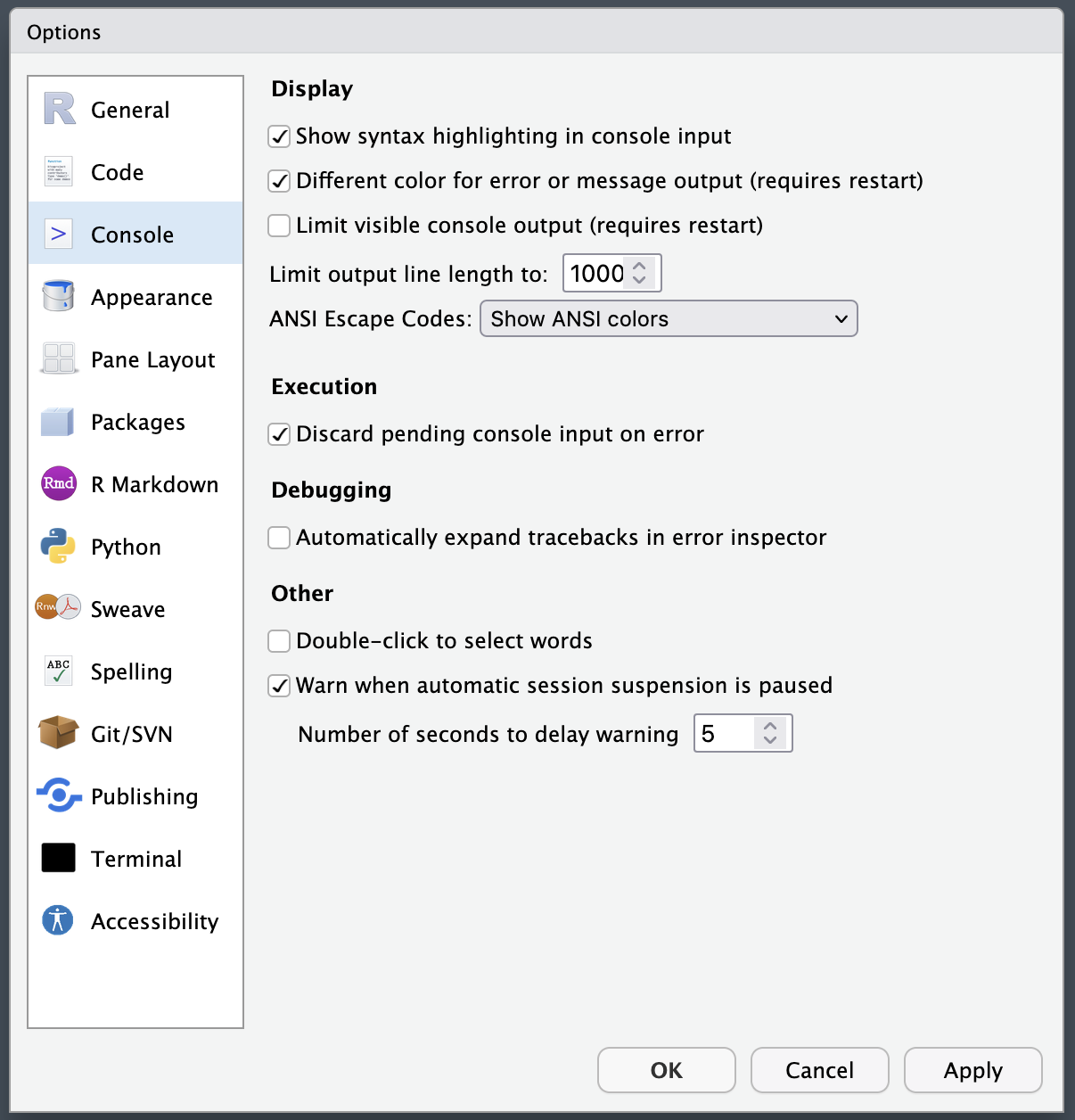 RStudioはそのままでも使えるが、少しカスタマイズするとより使い勝手が良くなる。RStudioのカスタマイズ画面はTools > Global Optionsをクリックすることで表示される。