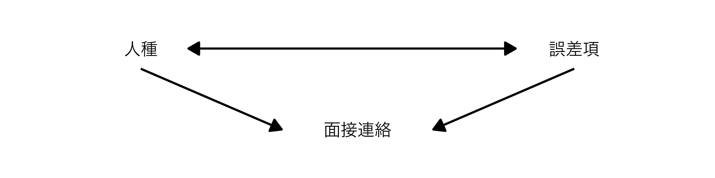 \(\Rightarrow\) 内生性がある限り、因果効果の識別は困難