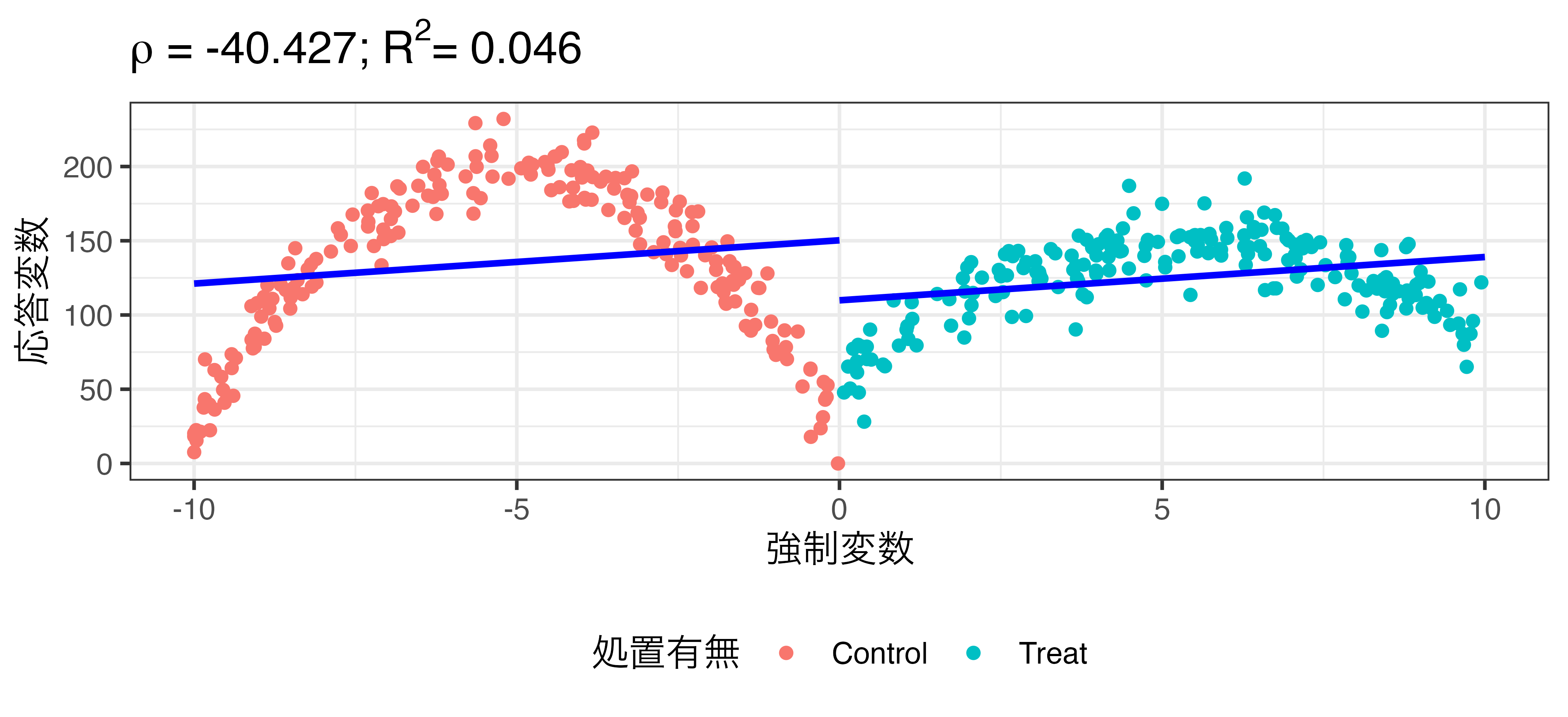 - 要は、処置変数 (=ダミー変数) を投入し、強制変数を統制した線形回帰モデル