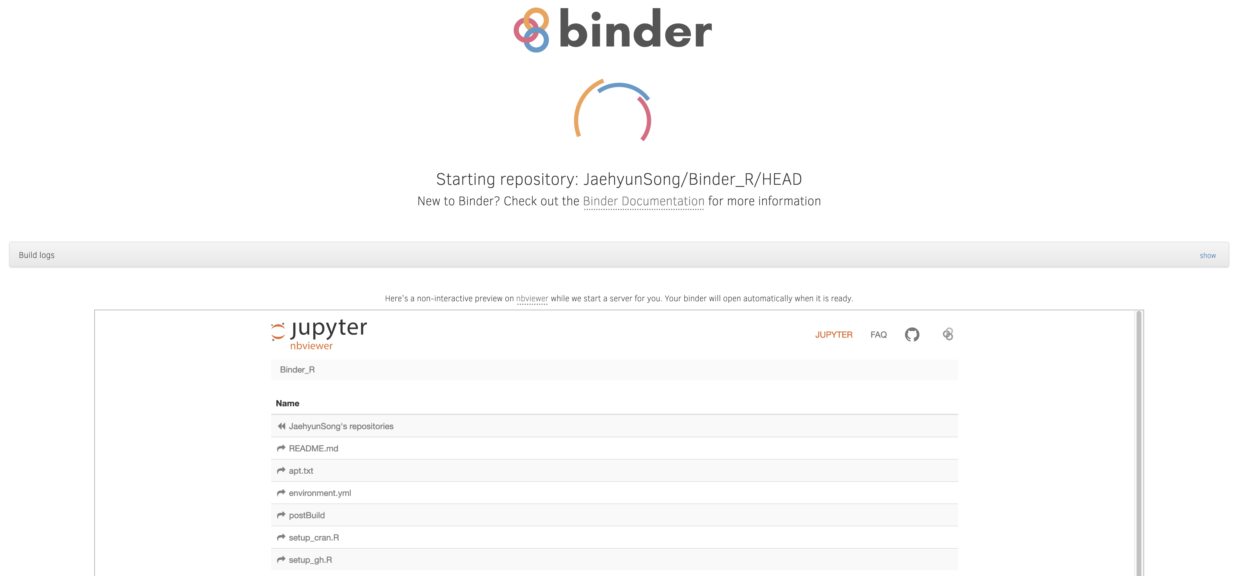 手順7: 初期設定が終わったら、すぐRおよびRStudioが利用可能だが、ここではFileメニューのLogoutをクリックし、タブ(or ウィンドウ)を閉じる。