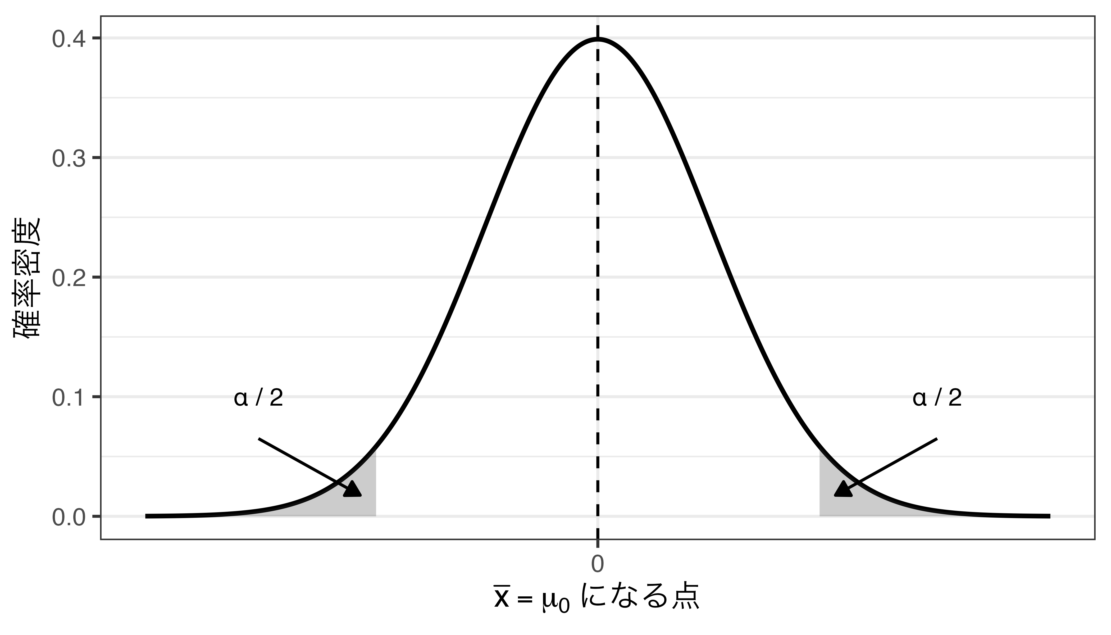 仮説:SSRキャラクターの本当の出現確率(=母平均\(\mu\))は3%(=0.03)ではない。\(\Rightarrow \mu \neq 0.03\)