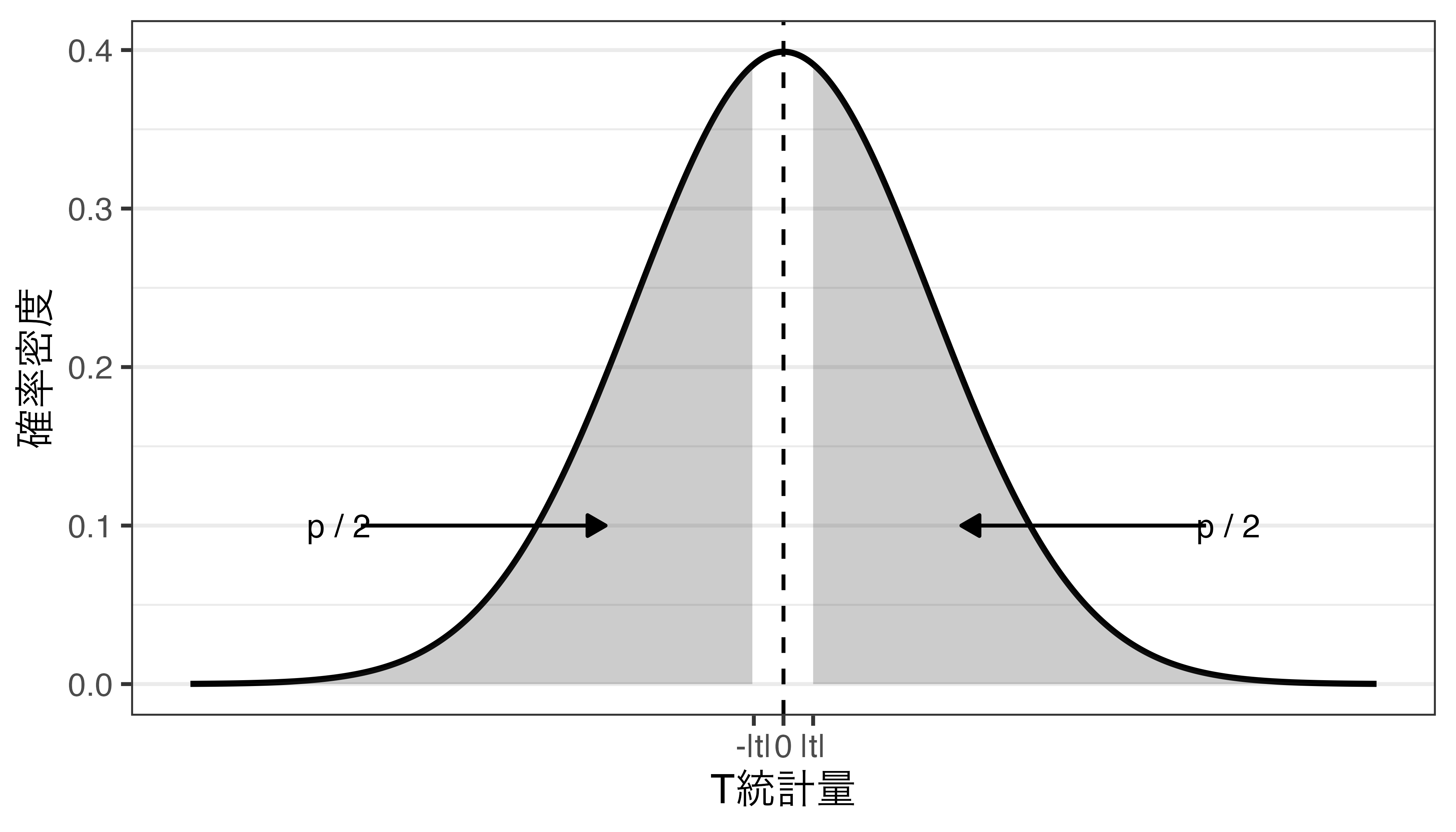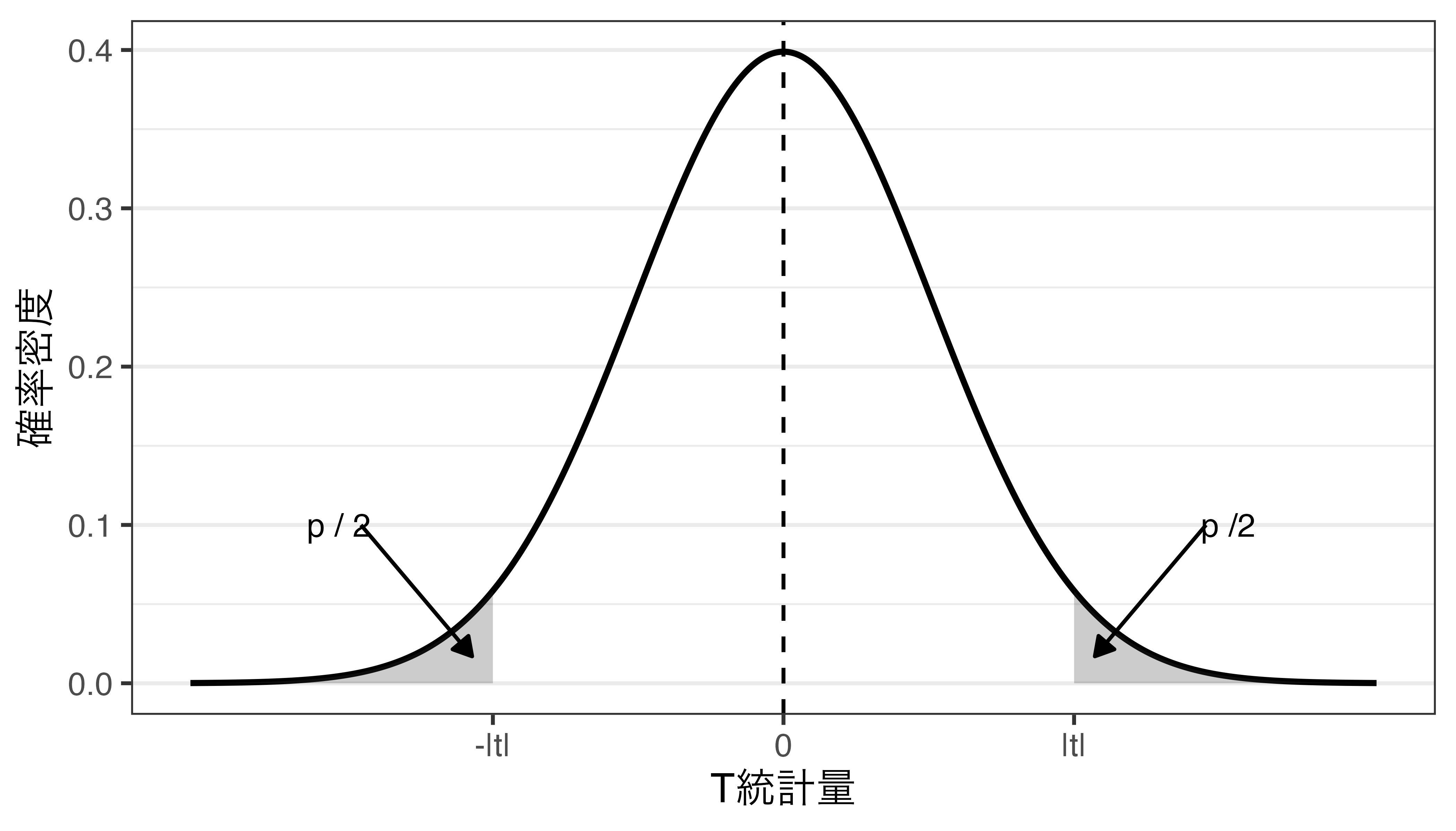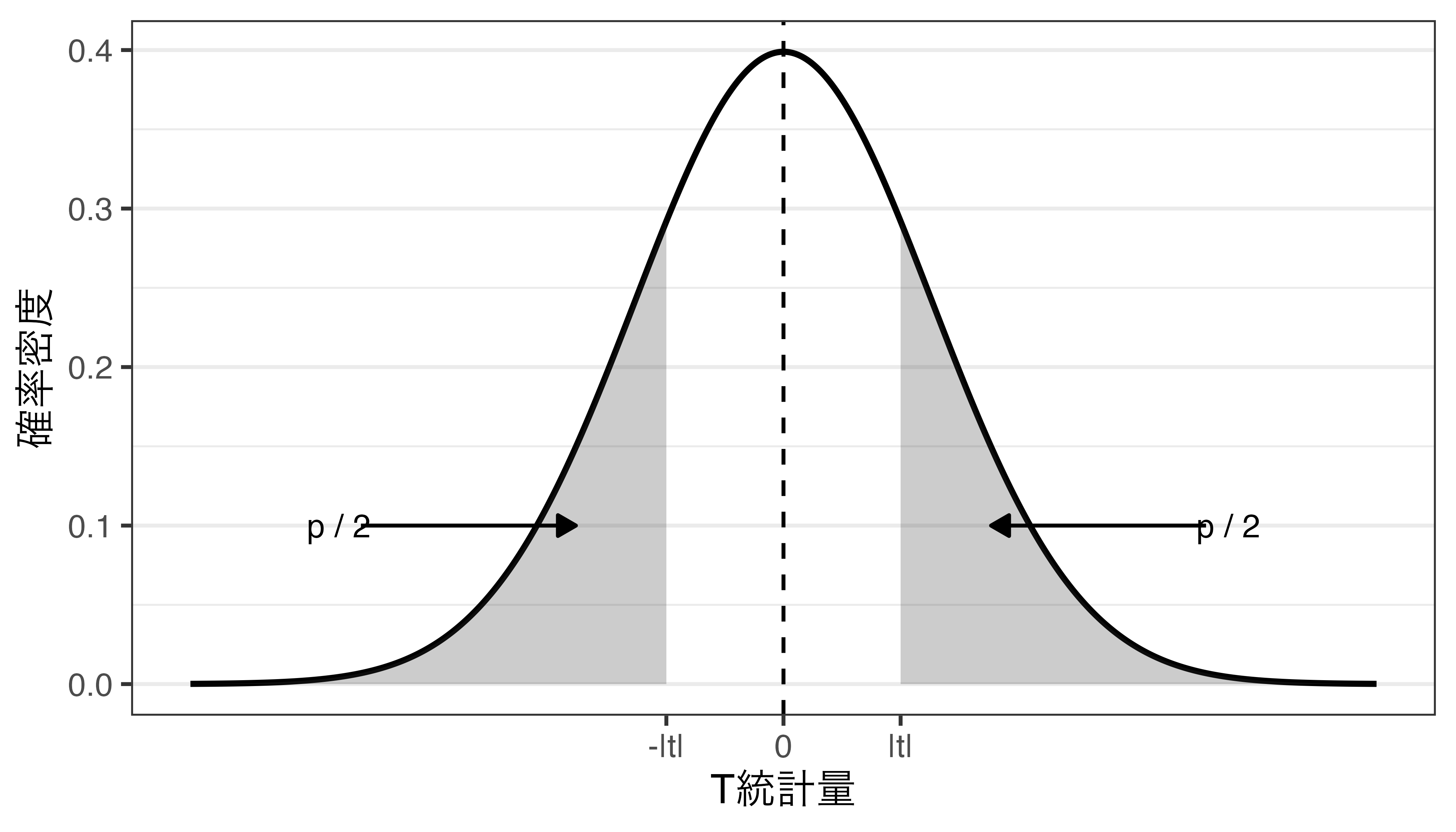 自分の主張が支持される = 対立仮説が支持される = \(|t|\)が大きい = \(p\)が小さい