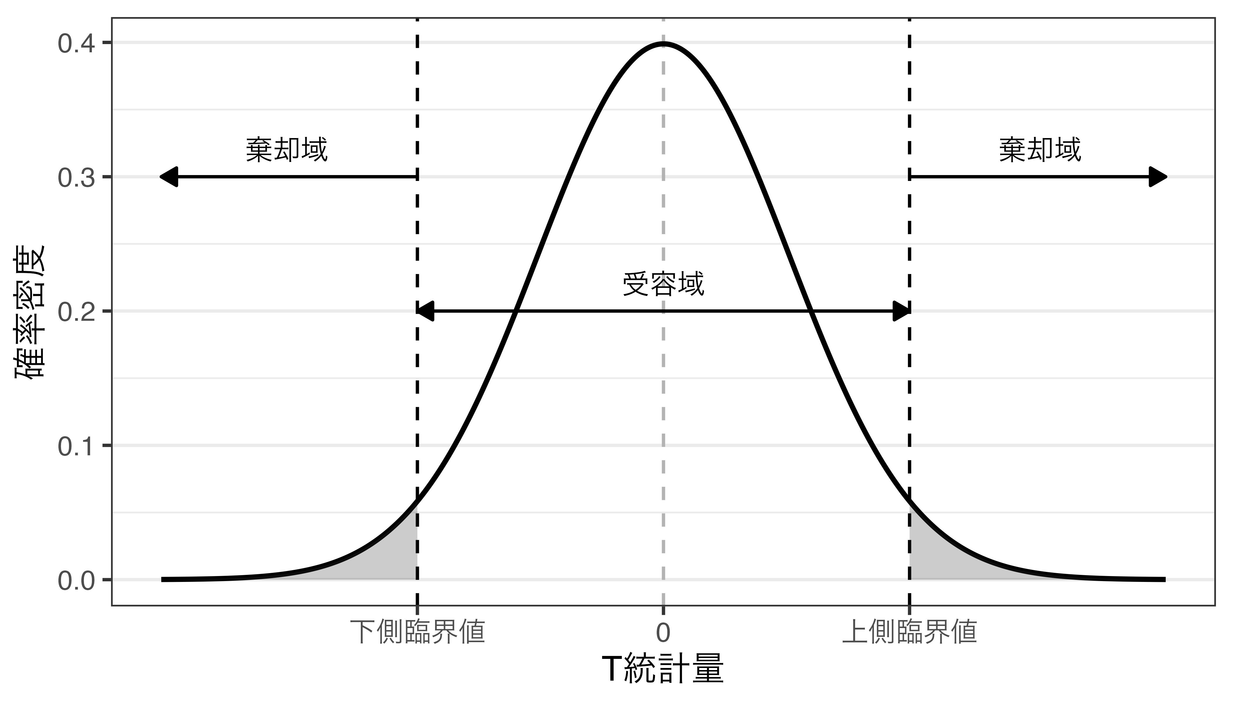 「検定統計量がこの領域に入ると帰無仮説は棄却される」における「領域」を決める段階