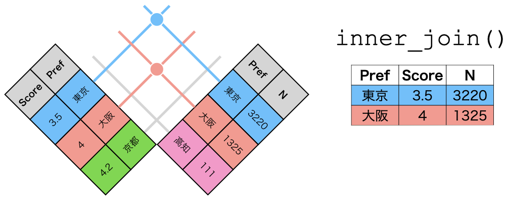 inner_join()の仕組みinner_join(データ1, データ2, by = "識別用変数名")
