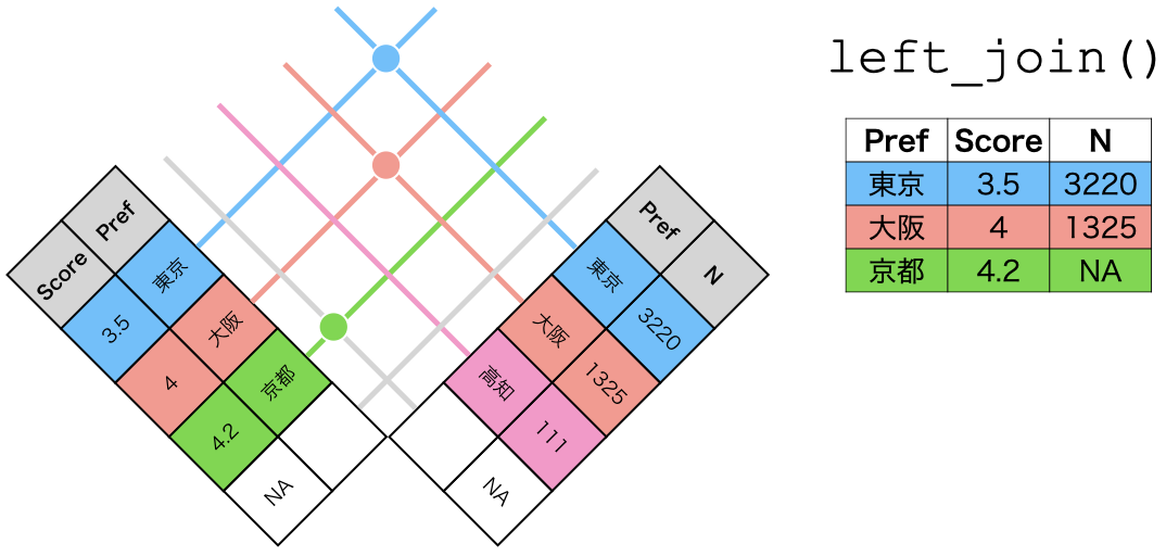left_join()の仕組みleft_join(データ1, データ2, by = "識別用変数名")