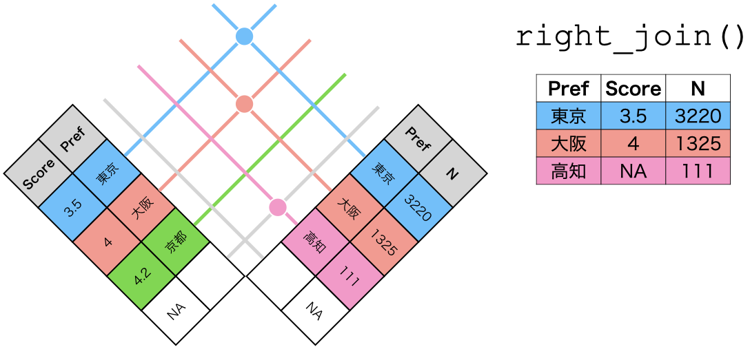 right_join()の仕組みright_join(データ1, データ2, by = "識別用変数名")