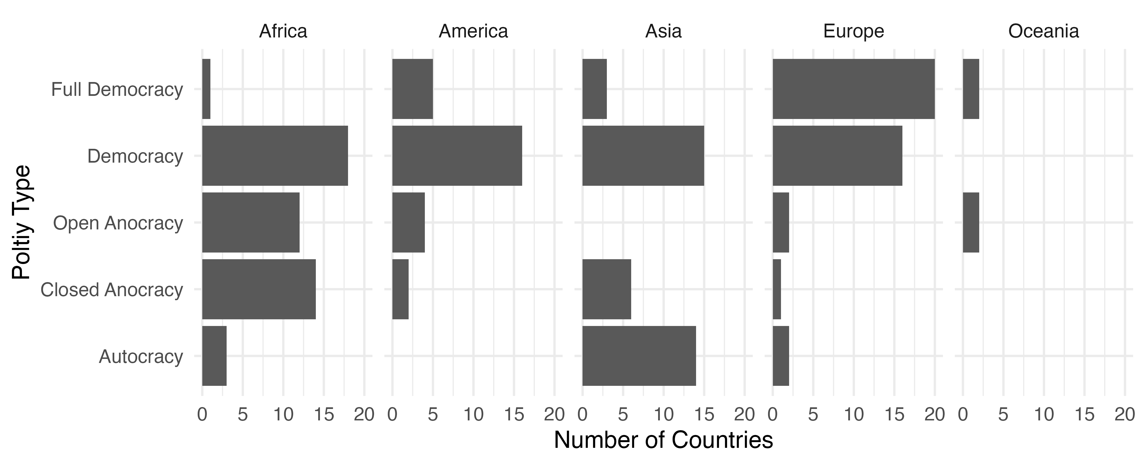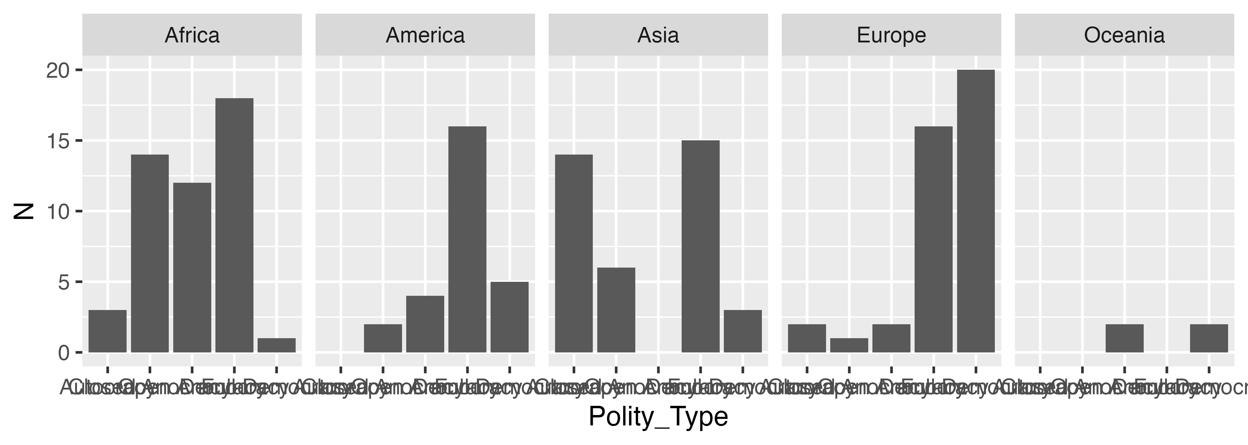 x = Polity_Type)y = N)例) さらに大陸の情報を持たせ、色分けしたい