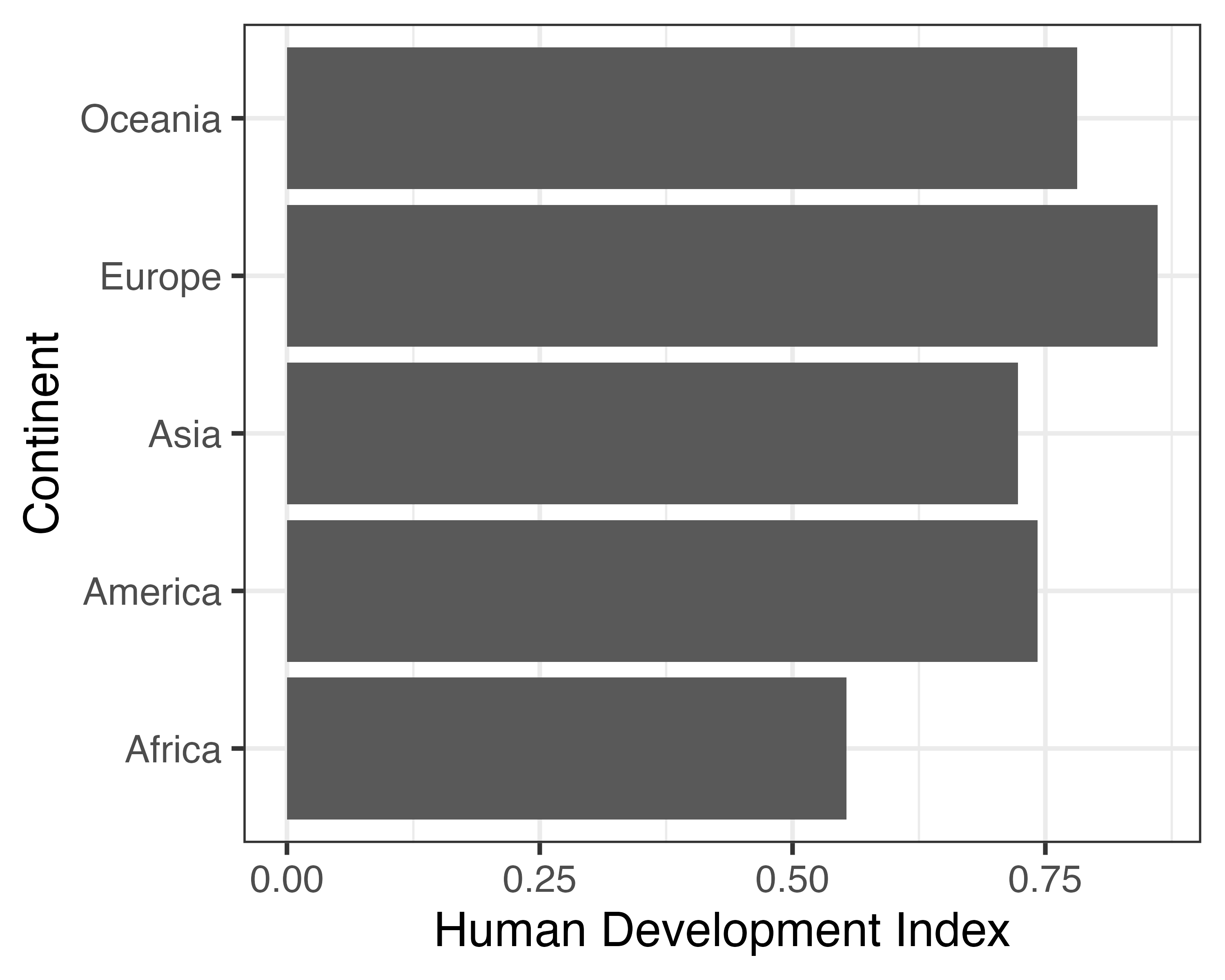 y: 棒の縦軸上の位置 (大陸)x: 棒の長さ (人間開発指数の平均値)